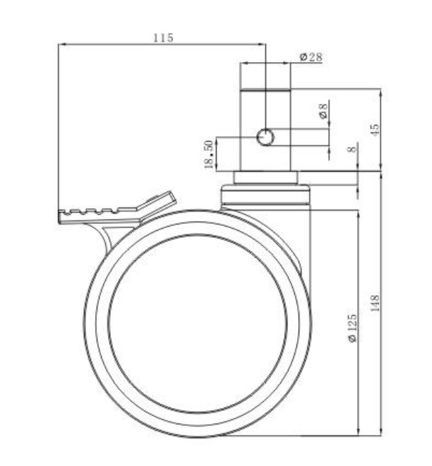 The swivel raceway features a sealed precision ball bearing for easy rollability.