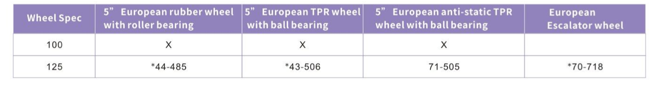 Wheels feature sealed precision ball bearings to provide a smooth,quiet and maintenance free ride.