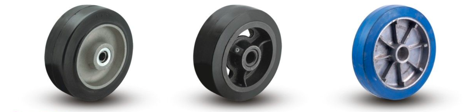 Cushion rubber tread are vulcanized to the cores. The soft rubber tread affords a cushion effect to the load. These wheels are highy shock absorbing and provide quiet operation, while dampening vibration.