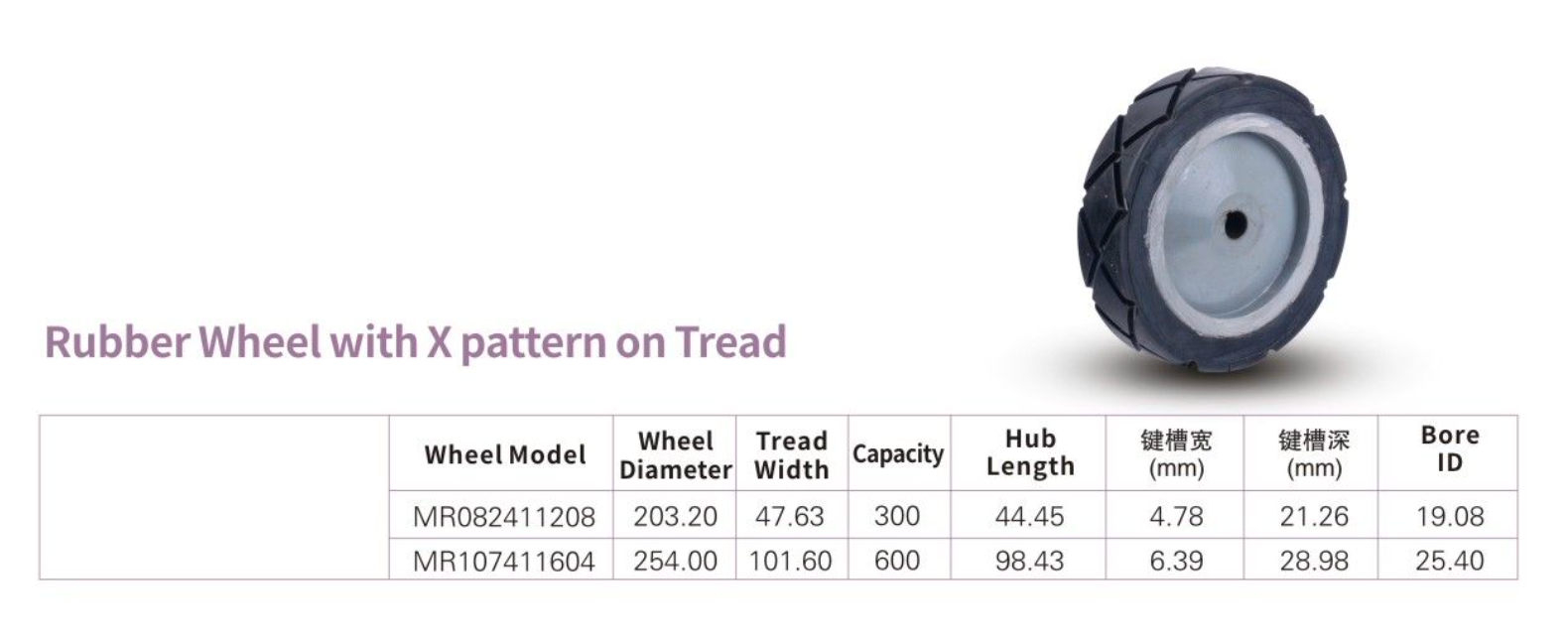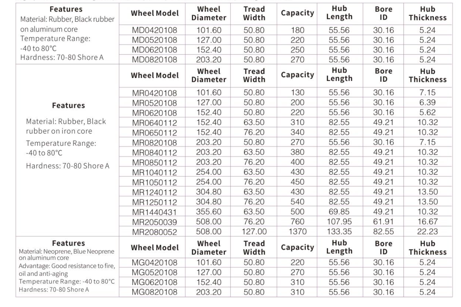 Cushion rubber tread are vulcanized to the cores. The soft rubber tread affords a cushion effect to the load. These wheels are highy shock absorbing and provide quiet operation, while dampening vibration.